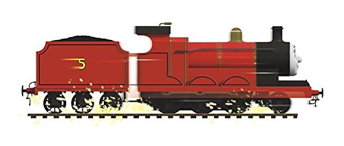 - James the Red Engine is speeding by with sparks flying!